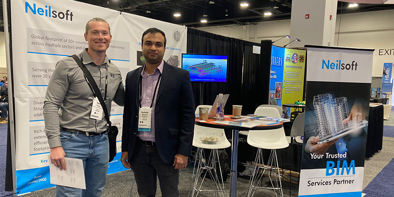 Mr. Swaroop Mahatme and Mr. Vijay Kadiwal represented Neilsoft at the NASCC 2022 and shared their perspective and knowledge on Steel Detailing. They also discussed Neilsoft’s Steel detailing and structural steel services including designing of complete structures to 3D modeling, fabrication drawings, Bill of materials and CNC files. “The event helped us to interact with clients and stakeholders of the North American Steel industry as well as capture their expectations in this ever-changing & dynamic sector. We were also able to demonstrate to them not only our detailing experience but also our Project Management, processes, and workflows which are the most important tools in delivering a successful project. – Mr. Swaroop Mahatme”